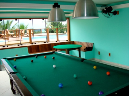 Sauna a vapor, academia e sala de jogo com pimbolim e mesa de sinuca.