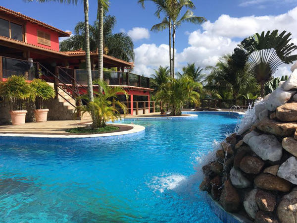 Casarão de luxo com jardim tropical exuberante de 13.000m2, oferecendo uma ótima opção de aluguel de temporada de luxo na região de Porto Seguro, ou para organizar seu evento.
