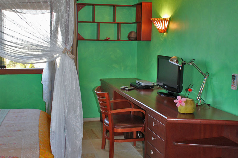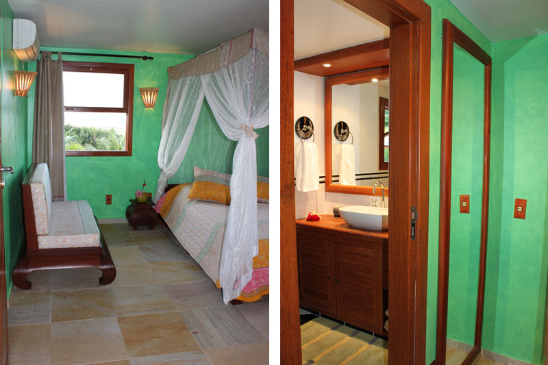 São 2 suítes no andar térreo, e uma no andar superior. Decorados com tecidos finos e com acabamento de altíssimo padrão, todos os quartos tem colchões e roupa de cama de alta qualidade, ar condicionado, TV LCD 32', DVD, cofre individual, sala de banho com misturador para água quente, secador de cabelos e closet com espelho.